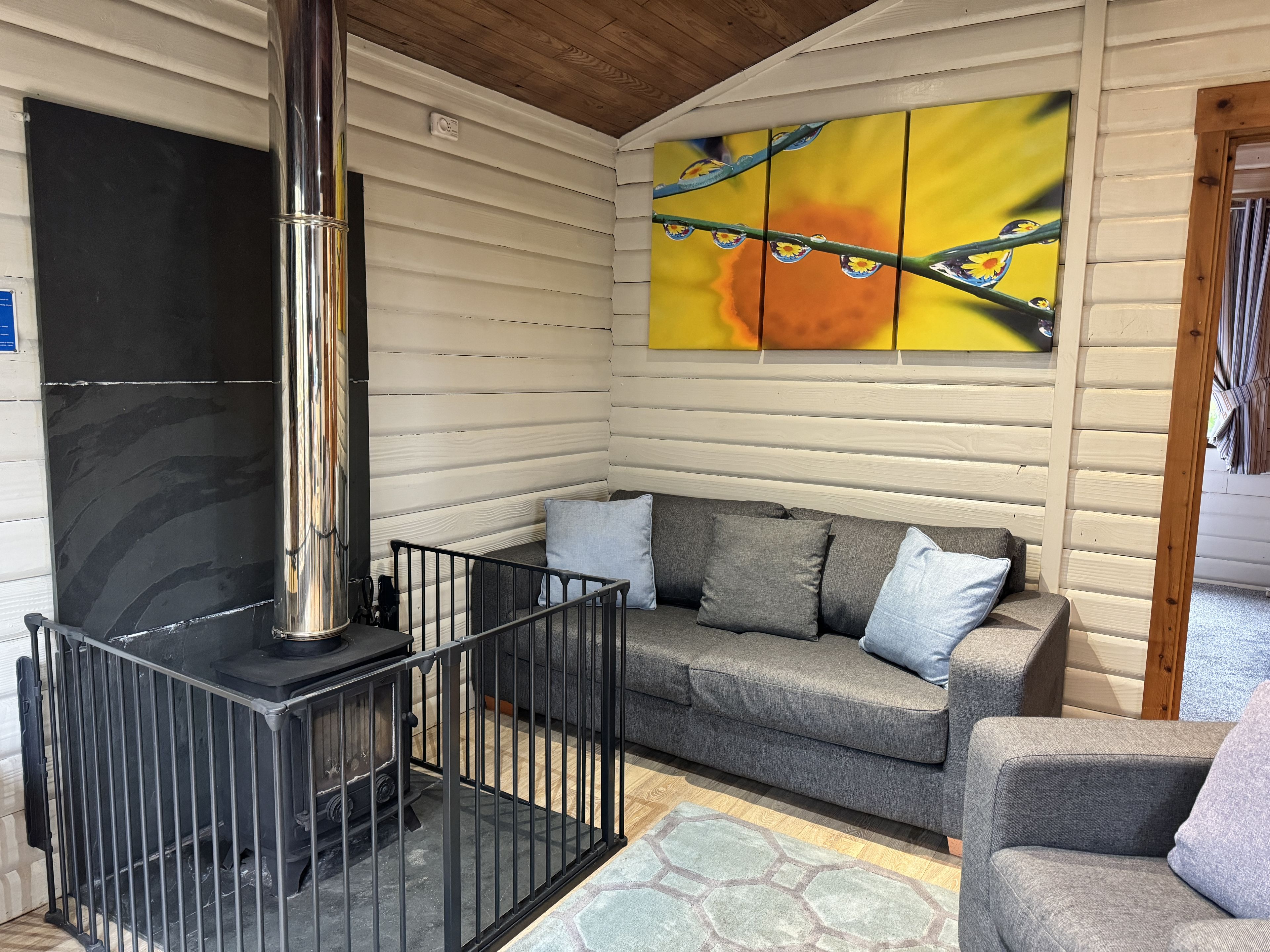 This lodge boasts a contemporary, fully-equipped kitchen, a master bedroom furnished with a cosy double bed, and a second bedroom that houses two single beds. Now a gem within our Secret Retreats collection, it has been enhanced further to include an enclosed garden area. This garden is adorned with exquisite tropical lighting and lush foliage, creating an enchanting ambience. Additionally, guests can enjoy an outdoor bar area, a day bed for ultimate relaxation, and a massive 65" TV, perfect for entertainment.
