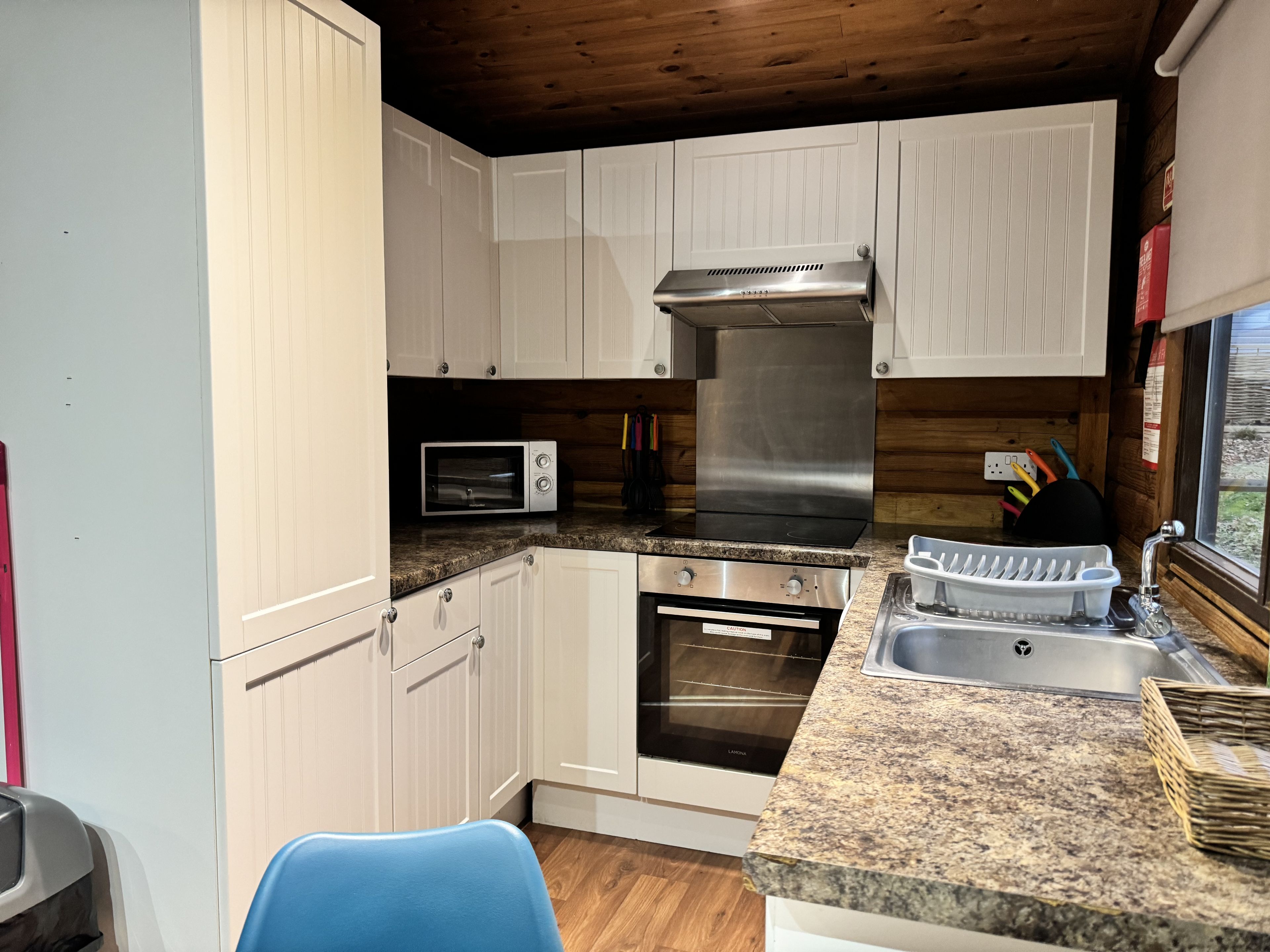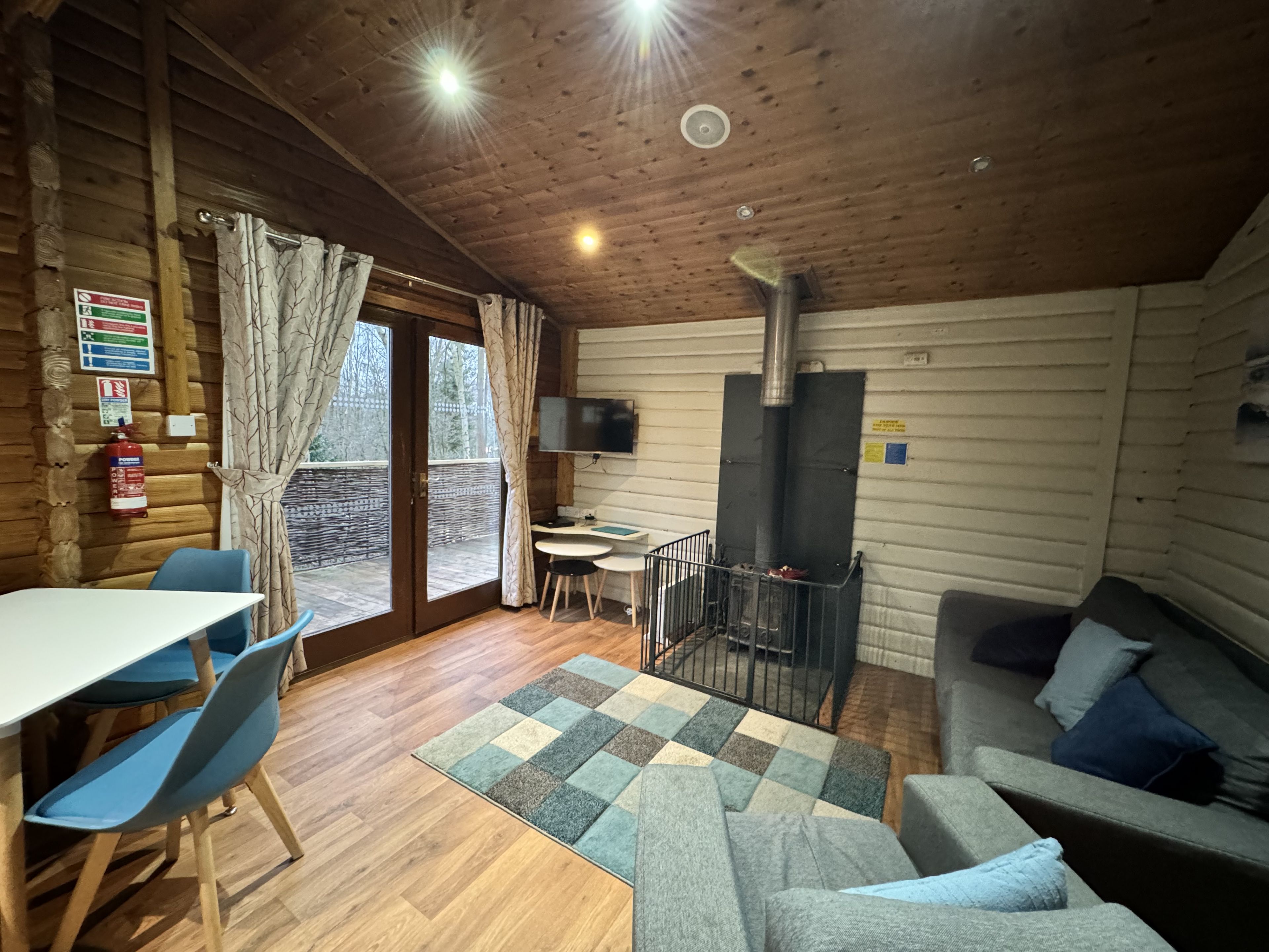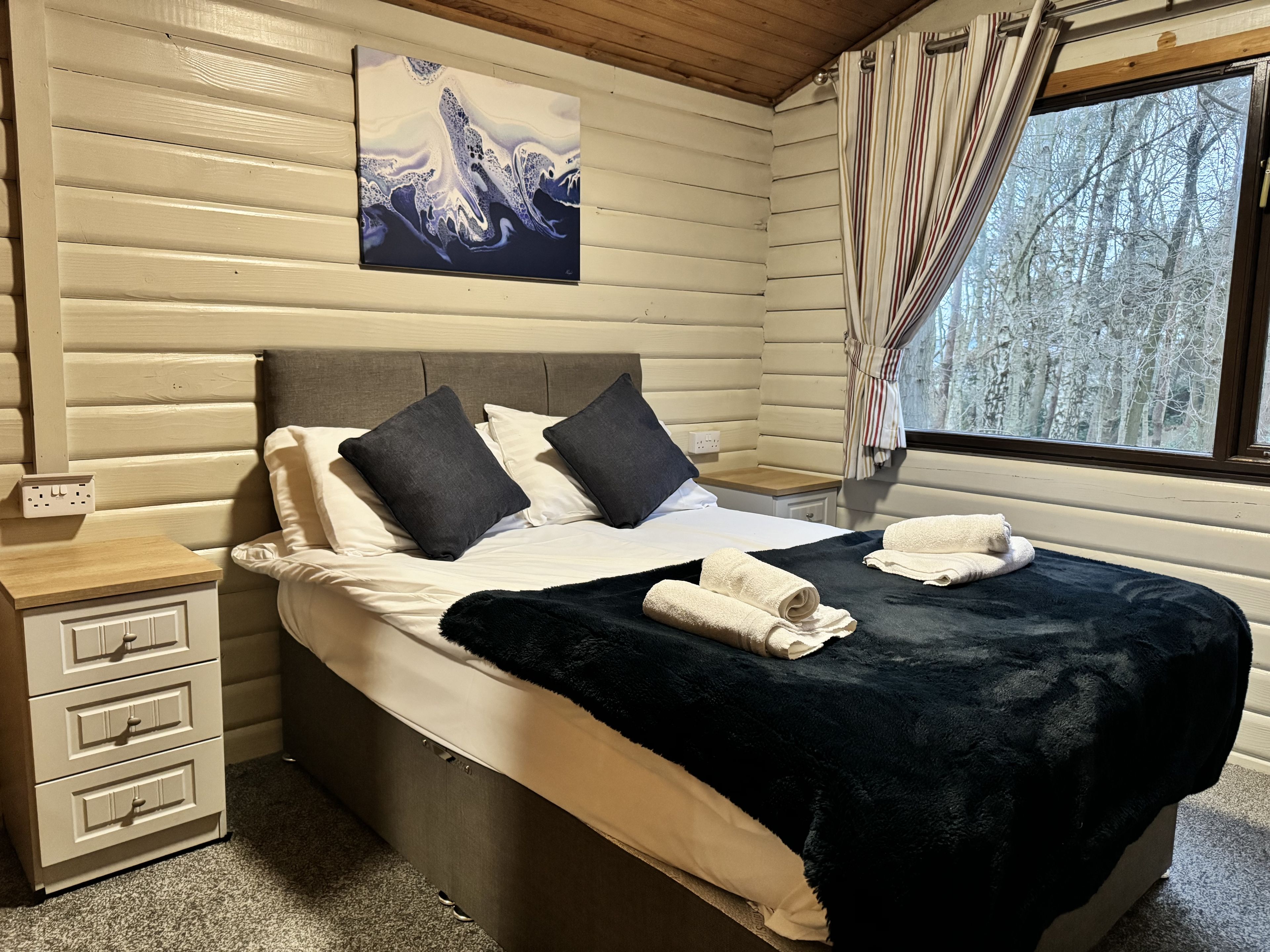 Comfortable cosy lodge. One double with TV and one twin. Shower. Flat screen TV. Dishwasher. Central heating. Decking with seating area.