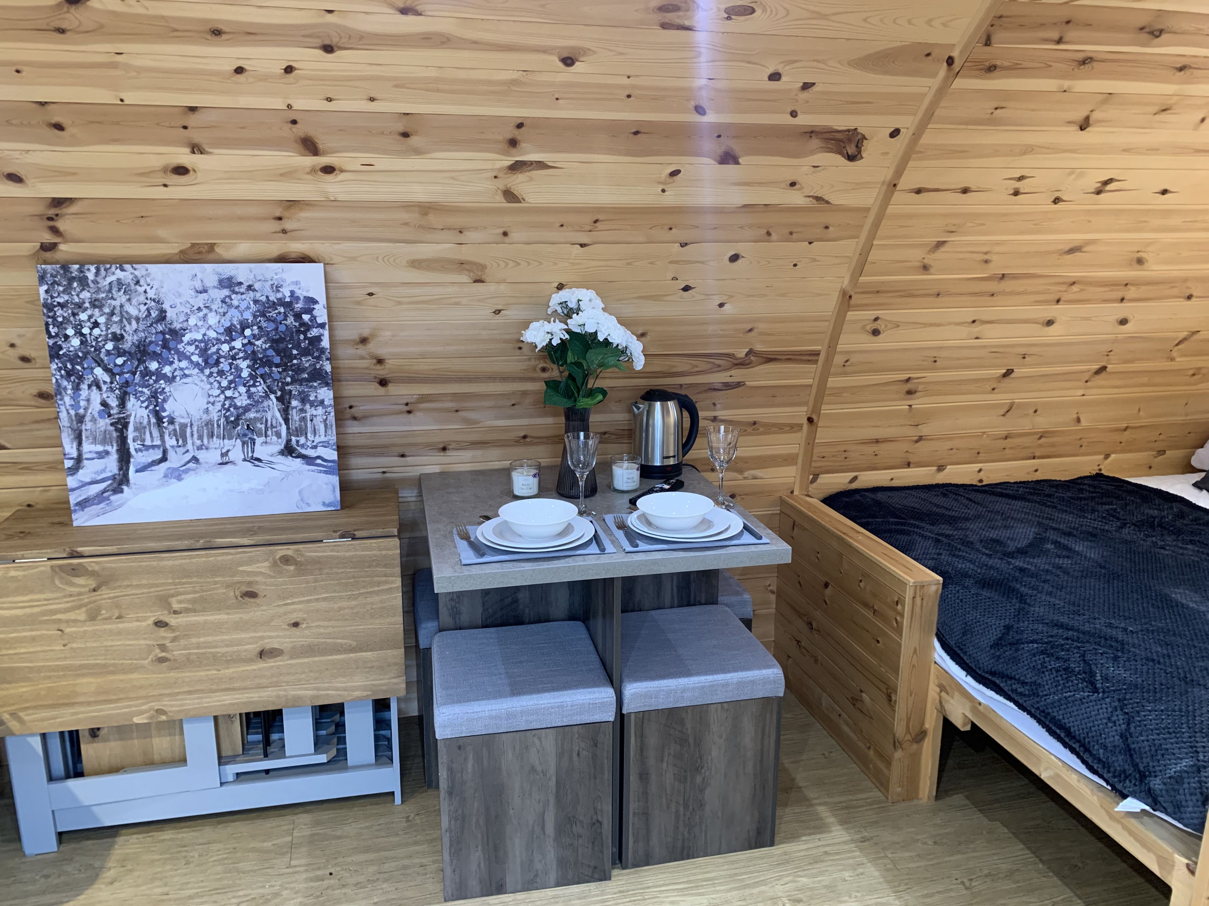 Our Acorn Pods are a popular accommodation type suitable for couples, friends, solo customers to enjoy the perfect break. Inside the pod is an open plan living area with 1 double bed, a mini kitchen with a microwave oven and fridge.