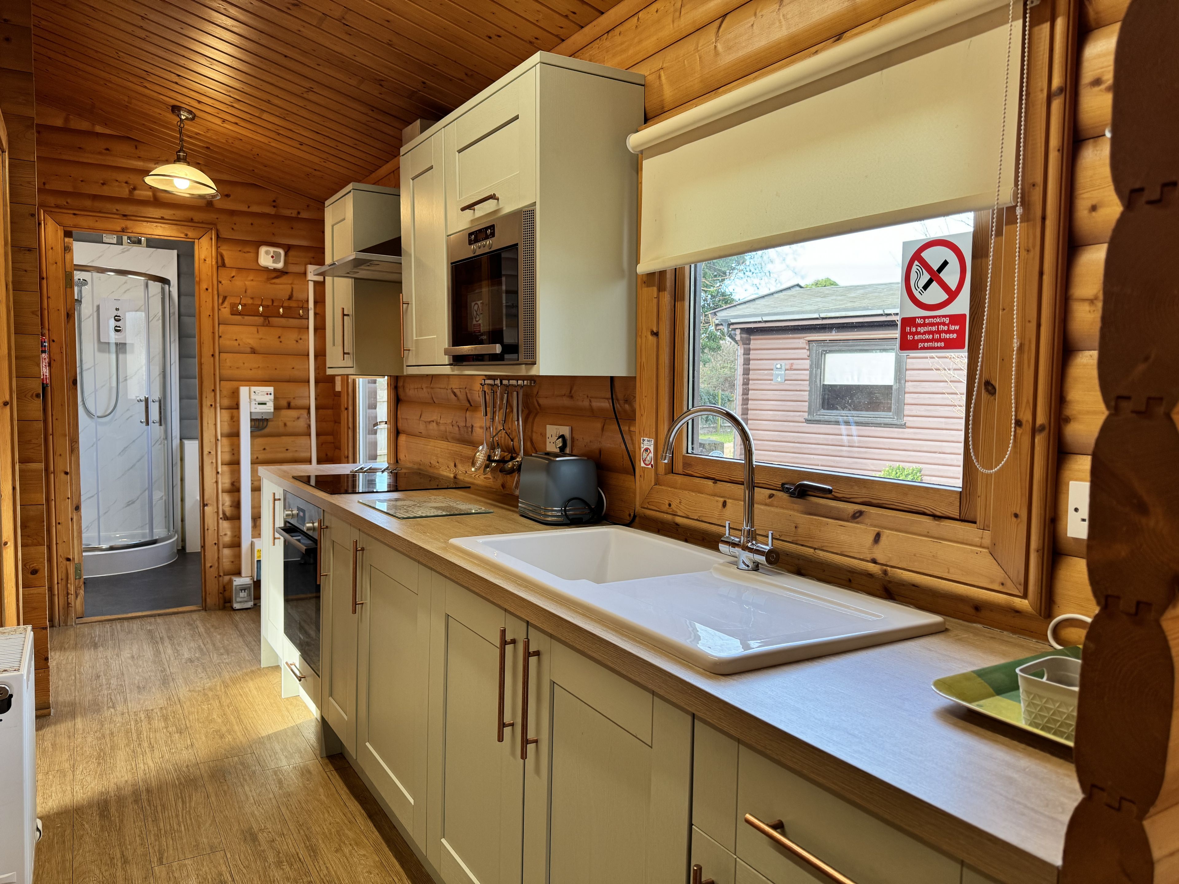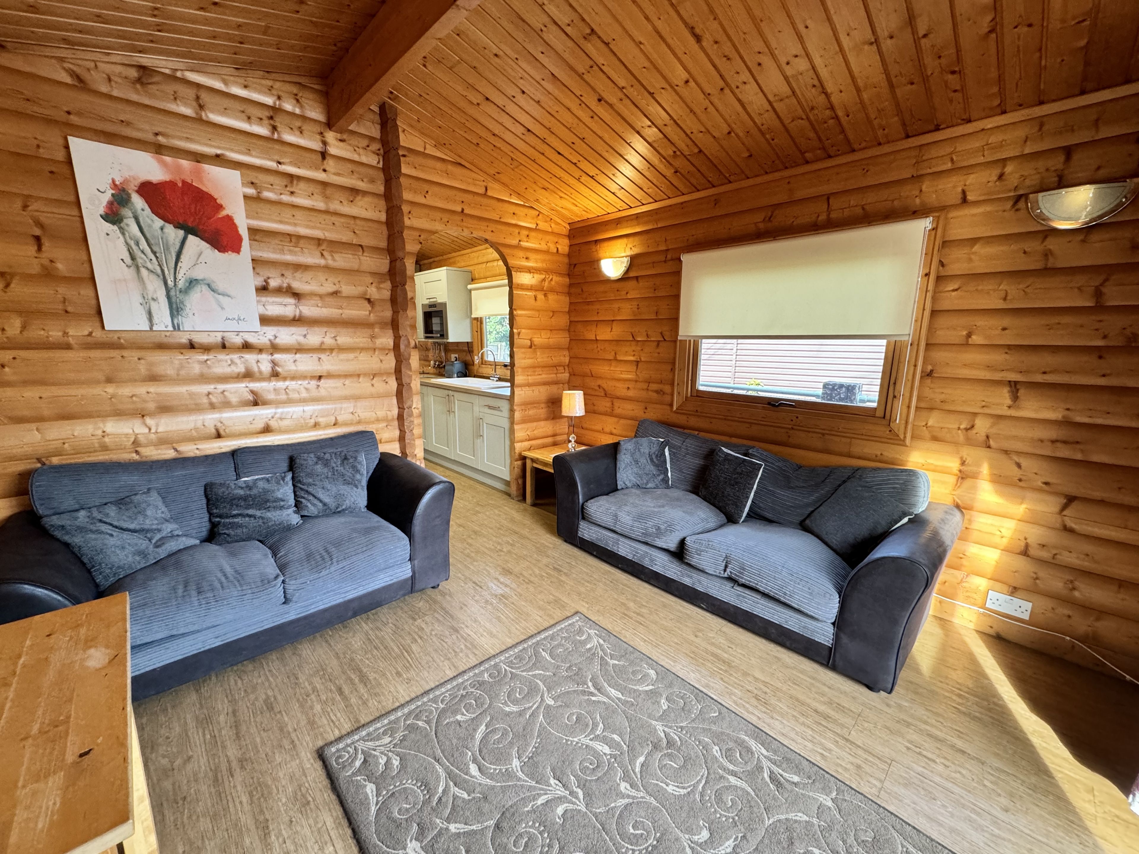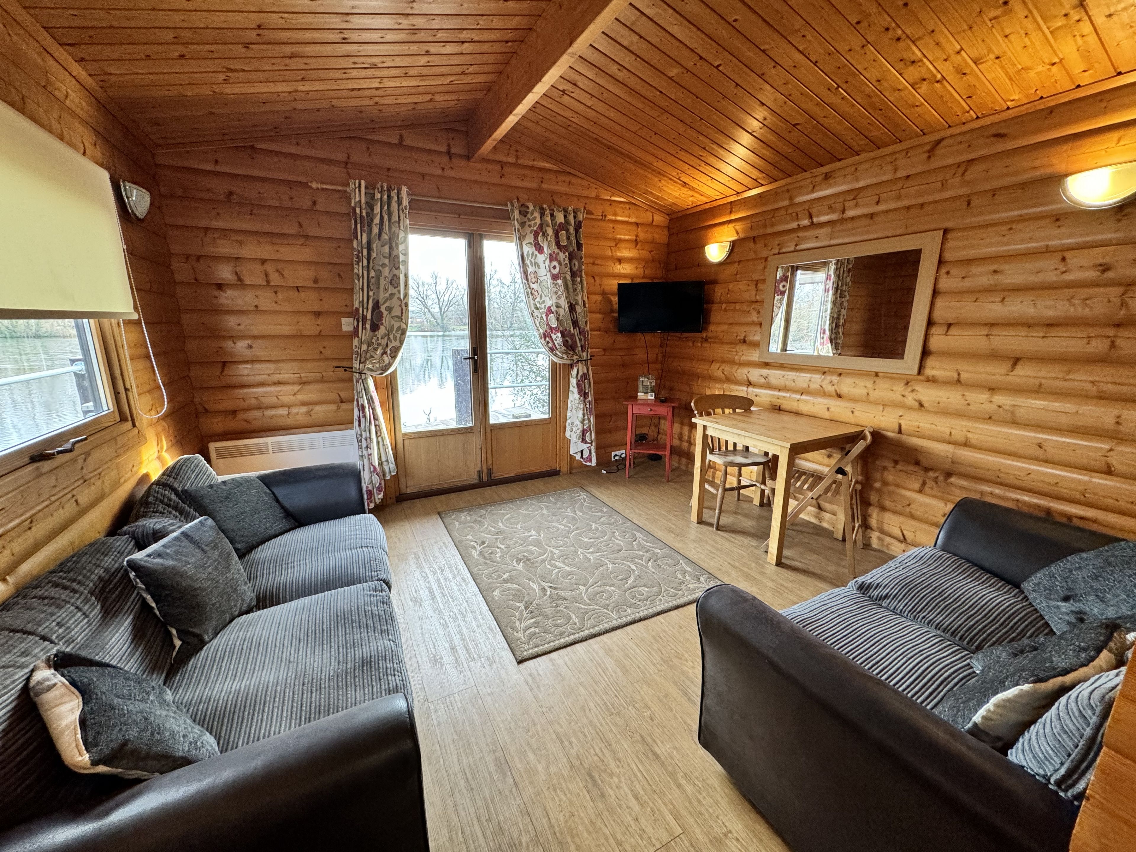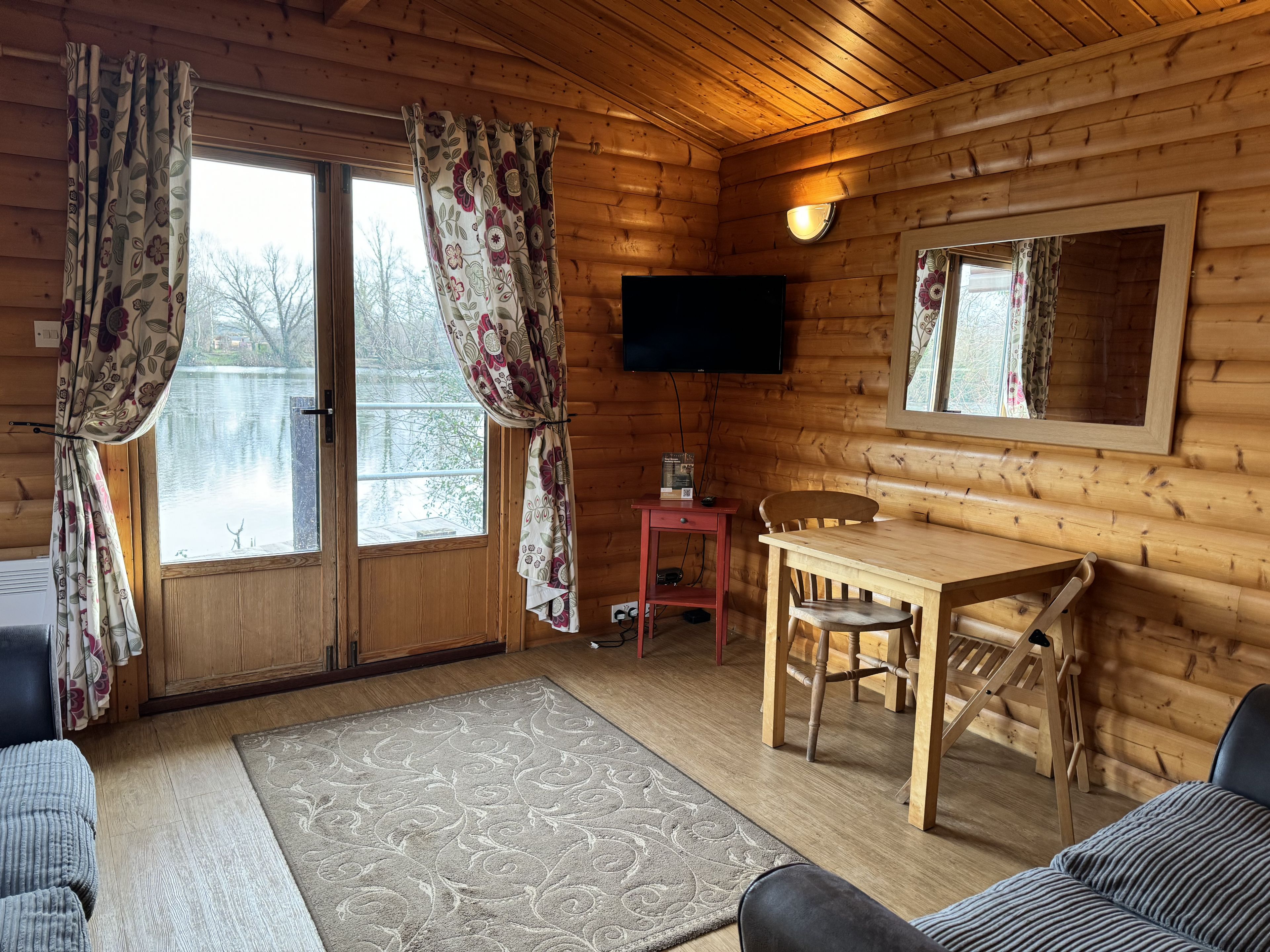 Enjoy breathtaking views overlooking the tranquil Cabin Lake from this lodge, complete with its very own private hot tub. Step outside to your exclusive outdoor area with a personal fishing peg. Inside, you'll find a well-equipped kitchen area and a spacious living/dining area, along with a comfortable double room and a twin room.