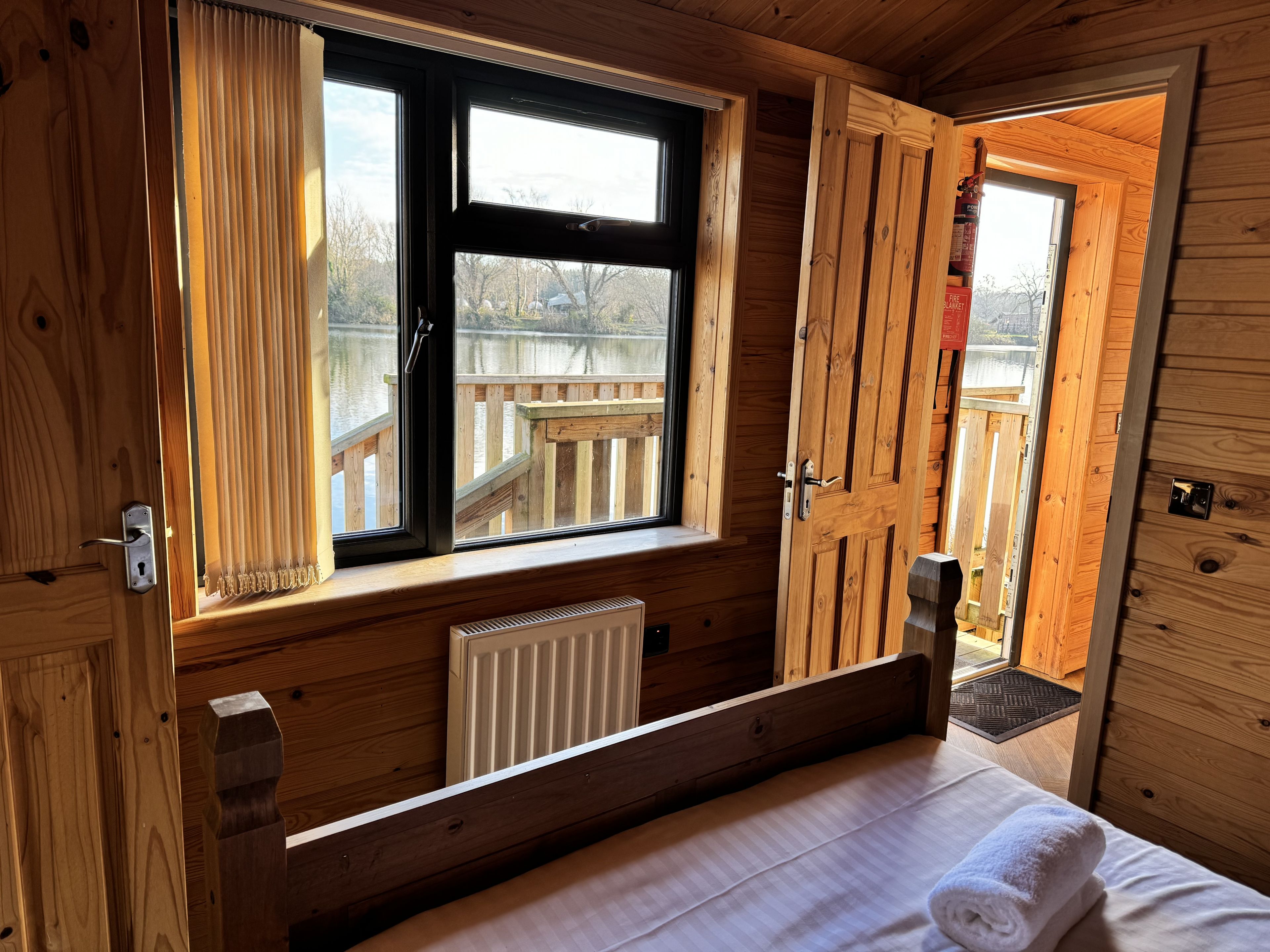 Set against the beautiful backdrop of the lake, our Willow Lakeside cabins comfortably accommodate six guests with two double rooms and a tw...