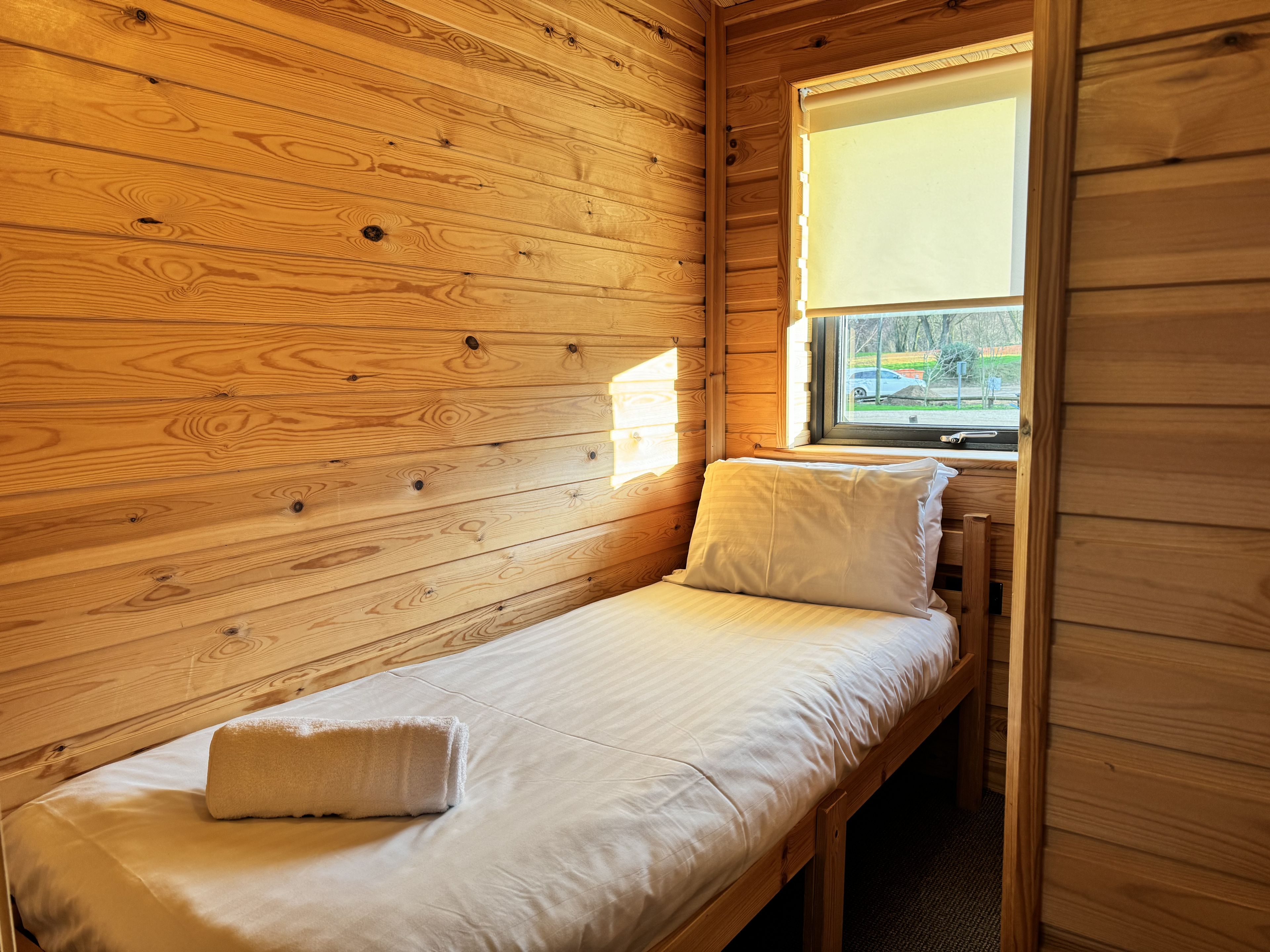 Nestled by the lakeside, our Larch XL cabin sleeps four comfortably with one double and one twin room. It offers a fully equipped kitchen co...
