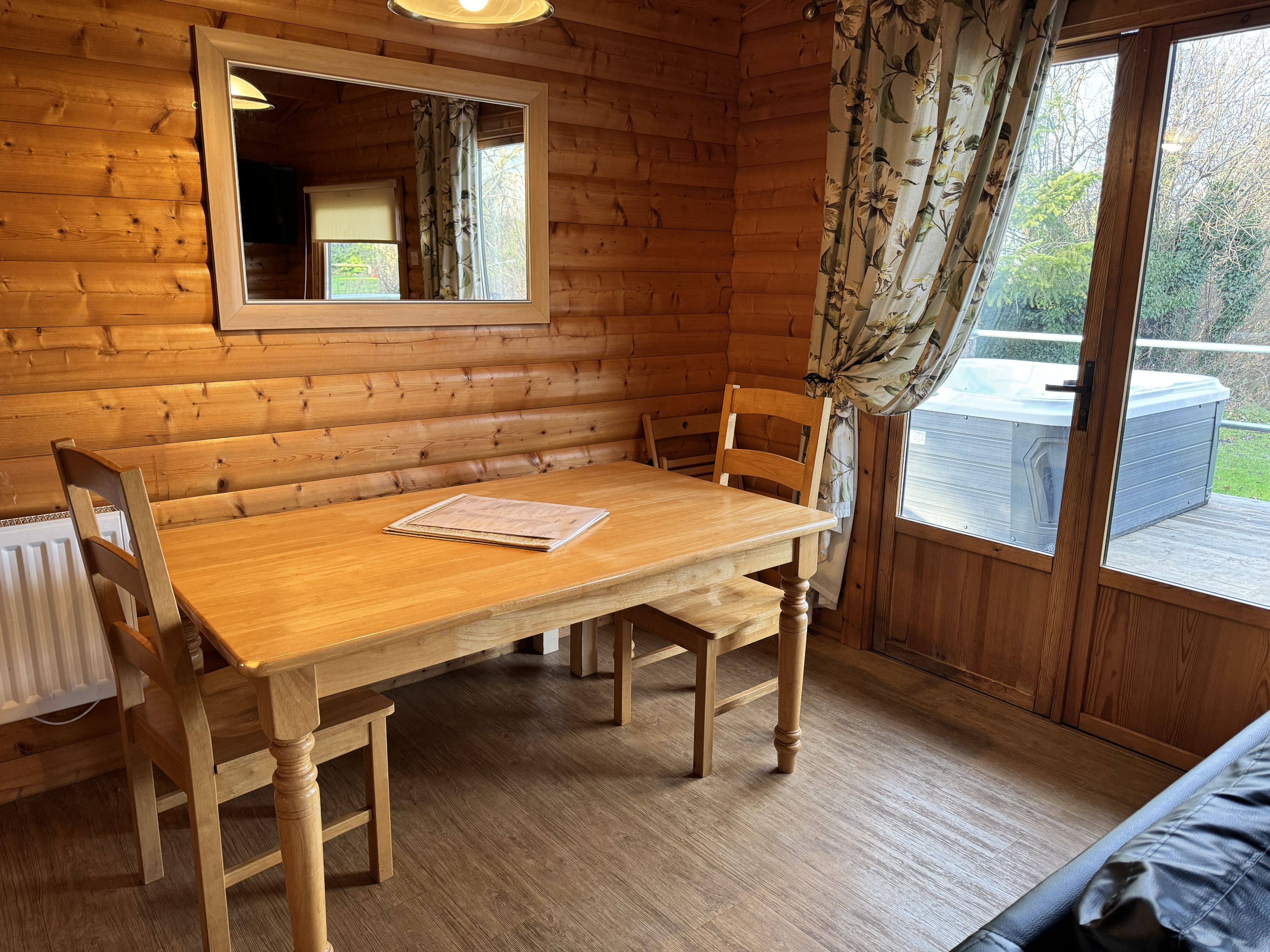 Nestled by the lakeside, our Larch XL cabin boasts its own hot tub and sleeps four comfortably with one double and one twin room.