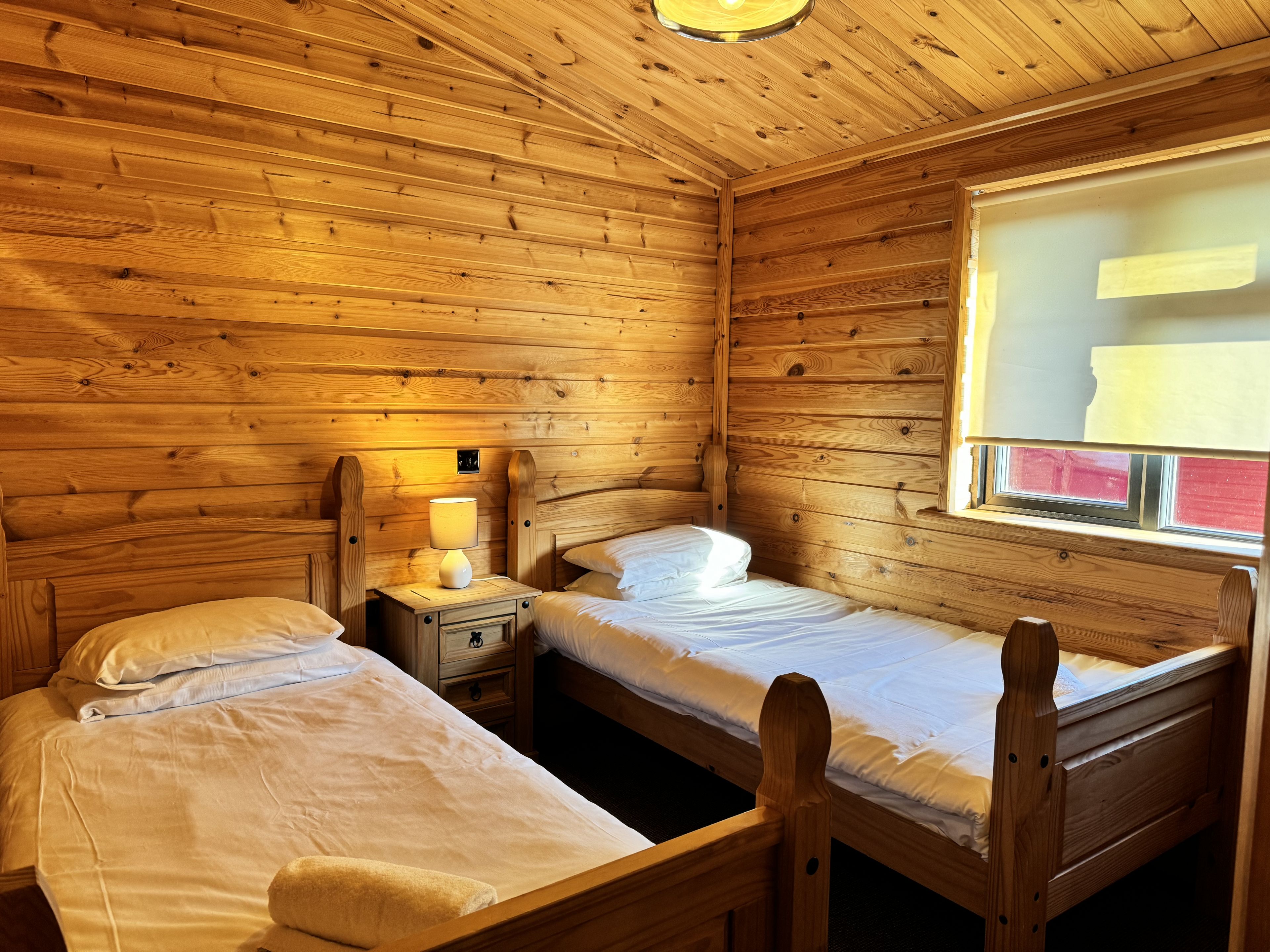 Set against the beautiful backdrop of the lake, our Willow Lakeside cabins comfortably accommodate six guests with two double rooms and a tw...