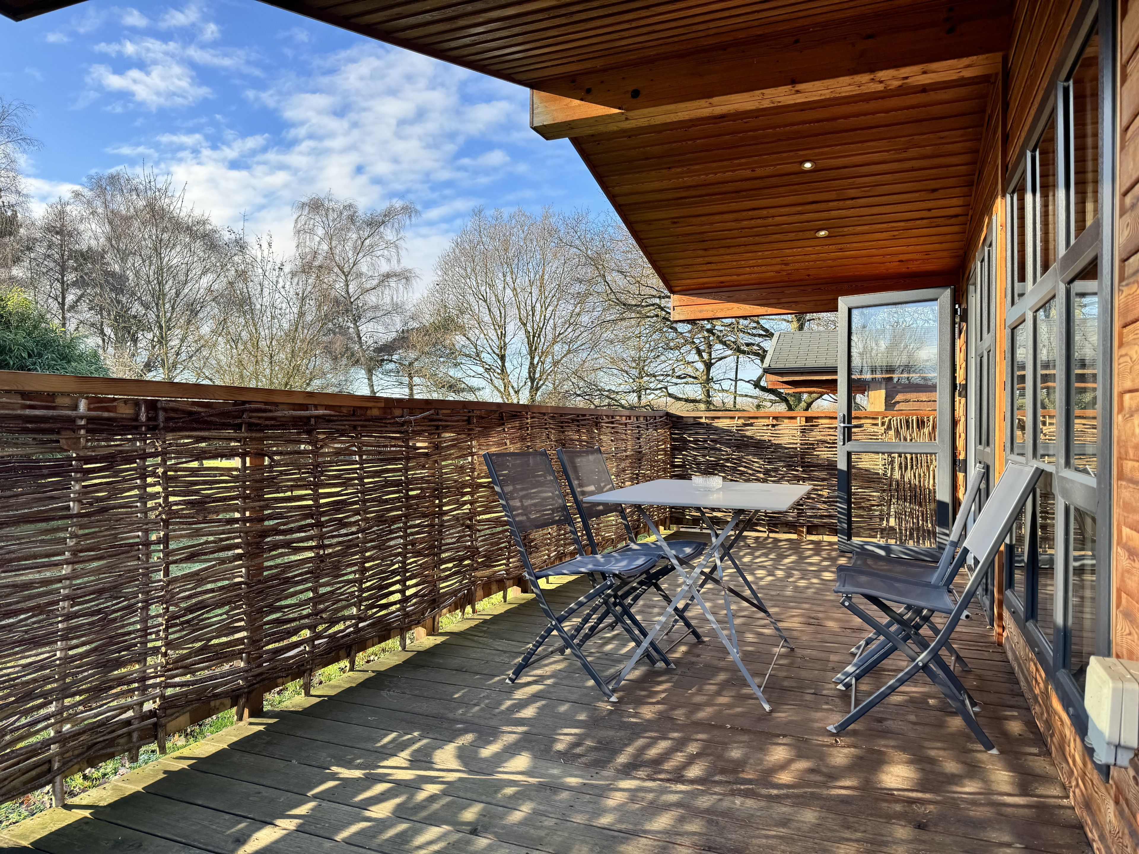 Nestled by the lakeside, our Larch XL cabin boasts its own hot tub and sleeps four comfortably with one double and one twin room.